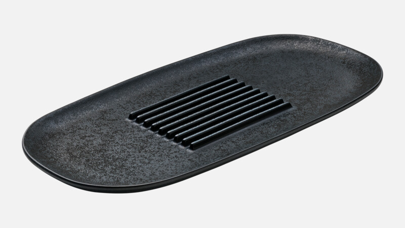 Die Steinzeugkollektion COAST & COUNTRY in Gusseisenoptik überzeugt durch überraschende Funktionen und zurückhaltendes Design. Jeder Artikel entfaltet bereits als „Solitär“ seine Wirkung, besonders ist jedoch die Kombinierbarkeit, die immer wieder überraschende Inszenierungen möglich macht. Und der besondere Clou: Durch den Mittelsteg auf Platte und Teller können die Bowls und Deckel fixiert werden, so dass beim Servieren nichts mehr verrutscht.-