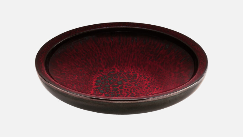 Für Einige typisch asiatisch oder 70er Vintage, für Andere ein absolutes Must Have für moderne Präsentationen. Jedes Stück ein Unikat. Die kraftvolle Kollektion Glow überzeugt durch eine intensive rote Effektglasur unterbrochen von anthrazitfarbenen Akzenten, die weiche Linienführung des Designs und den dicken Scherben. Mehr Statement geht nicht.