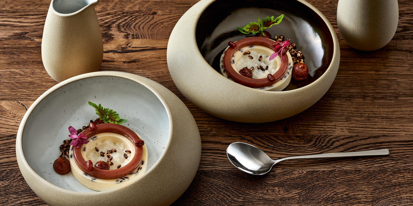 Guilt-free-Speisen sind also allein schon aufgrund ihrer ungewöhnlichen Zutaten eine Besonderheit und sorgen für überraschende kulinarische Erlebnisse. Dies sollte aber auch durch eine angemessene Präsentation unterstrichen werden. Das passende Geschirr für den Guilt-free-Trend findet man etwa in der avantgardistischen Kollektion EMBRACE von PLAYGROUND: Die nestartige, fast schon schützende Optik strahlt Geborgenheit und Ursprünglichkeit aus. Zudem sorgt sie für einen Aha-Effekt: Es gilt, die Speisen im wahrsten Sinn des Wortes zu entdecken, da diese durch den Überhang leicht verborgen sind, was vor allem bei der großen Bowl zum Tragen kommt. Zum Überraschungseffekt trägt auch das kontrastreiche Material bei: Es ist innen glatt, außen aber natürlich rau für ein handschmeichelndes, haptisches Erlebnis.