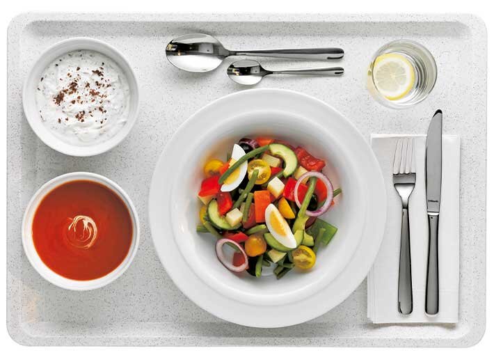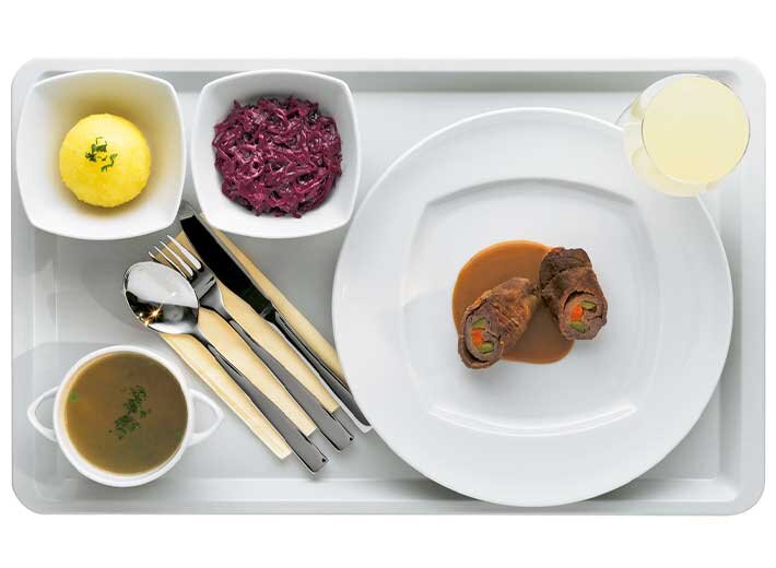 Multifunktionales Geschirr für genormte Tabletts