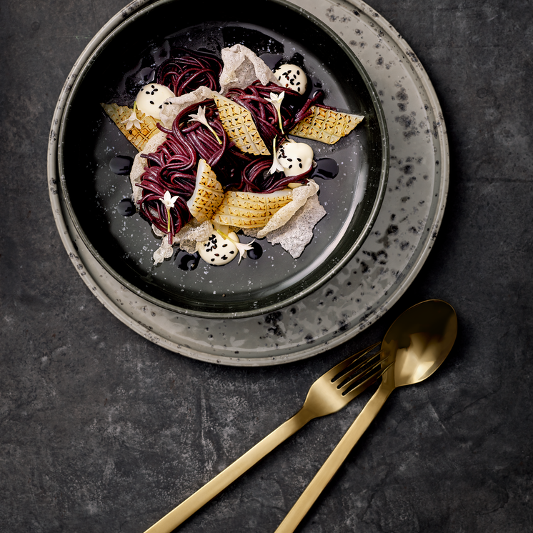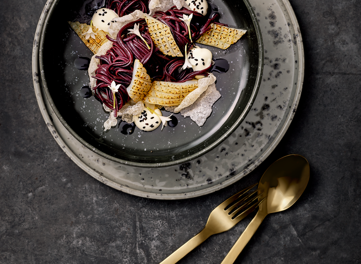 Wenn es Nacht wird, gehen Augen, Ohren und Tastsinn auf Habachtstellung. Die Dunkelheit sensibilisiert unsere Sinne, schärft die Wachsamkeit, weckt die Neugierde. Mutige Chefs entdecken diesen Gänsehauteffekt für intensive neue Inszenierungen. Schwarze oder dunkeltönige Präsentierflächen bringen ihre reduzierten Farbkompositionen zum Leuchten. Ganz Couragierte treiben die schwarze Magie ins Extreme und experimentieren mit schwarzen Speisen auf schwarzem Steingut.