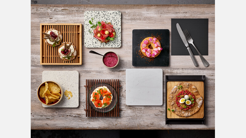 ANANTI ist ein wandlungsfähiges Modulsystem für die Gastronomie, gefertigt aus natürlichen Materialien, wie Nussbaum oder Eiche. Tablettartige Menagen können mittels unterschiedlich hohen Füßen auf dem Tisch oder dem Buffet dekorativ angeordnet und in unterschiedlichen Höhen gestaffelt werden. Ergänzt um unterschiedliche Einsätze aus Holz, Marmor oder Leder wurde Ananti gezielt auf die Bedürfnisse gehobener und außergewöhnlicher Präsentation abgestimmt. Design: Carsten Gollnick.