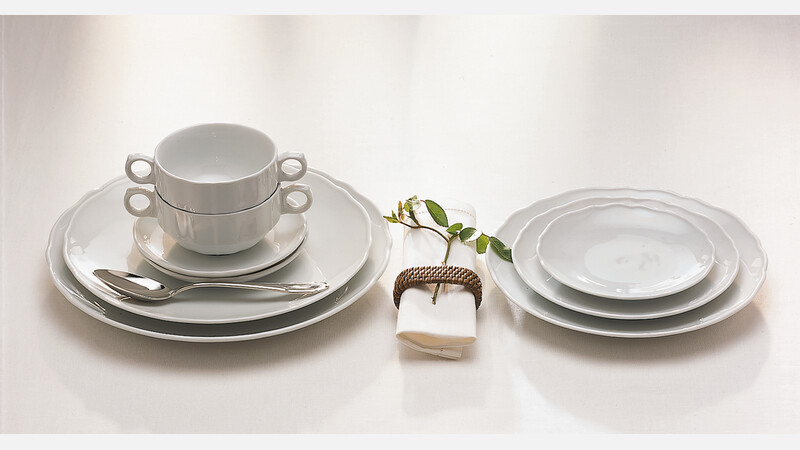Ihr einzigartiger „Style“ sorgt dafür, dass die originale Barockform auch ein jüngeres Publikum begeistert. Sie fügt sich ebenso perfekt in moderne, urbane Locations wie in traditionsreiche Gaststätten. Das besondere Detail: die romantische Rosenknospe an Kannen und Zuckerdose sowie der festonierte Rand der Flachteile.-