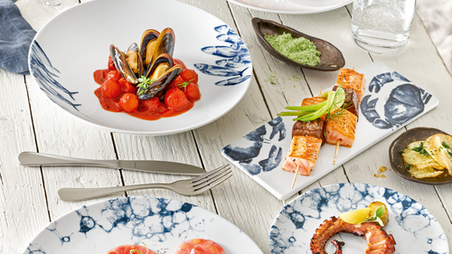 Erleben Sie Fine Dining für besondere Momente – KUMO bietet Ihnen die perfekten Artikel für beeindruckende Table-Settings. Entdecken Sie die maritimen Dekore OCEAN BREEZE und BUBBLES, die sich auf dem gedeckten Tisch wie ein Puzzle zusammenfügen.
