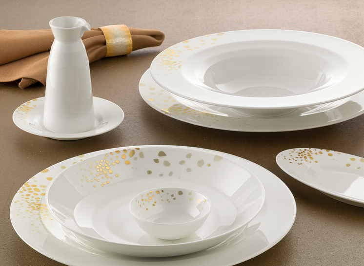 Attraktive Gegenspieler zu schlicht weißen Tellern sind Artikel mit besonderen Dekoren. Zu beachten ist dabei, dass diese der Foodpräsentation nicht die Show stehlen. Bei SCHÖNWALD kommen die modernsten Dekorationstechniken zum Einsatz. Eine besondere Art der Veredelung von Porzellan ist das Sandstrahlen.