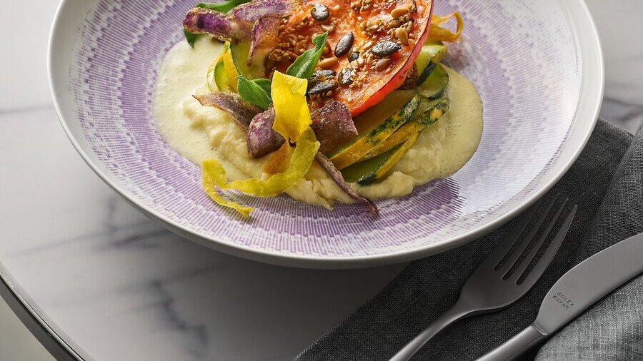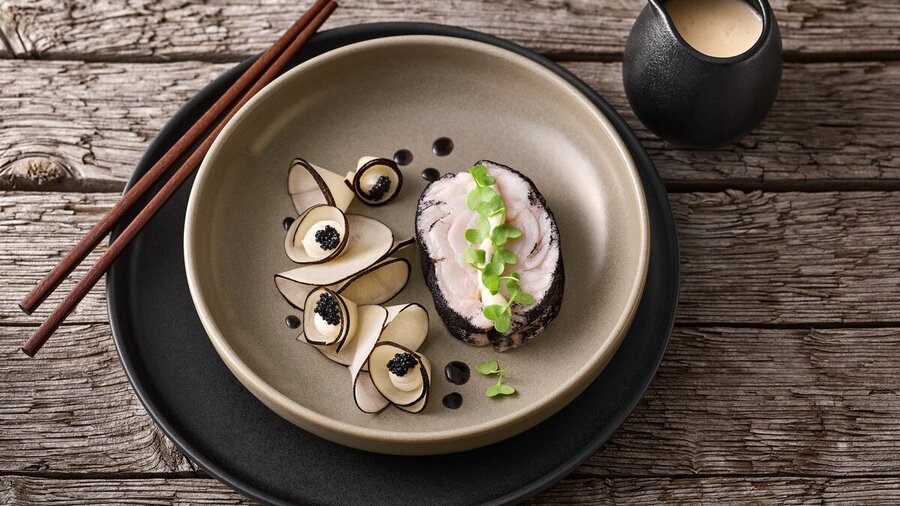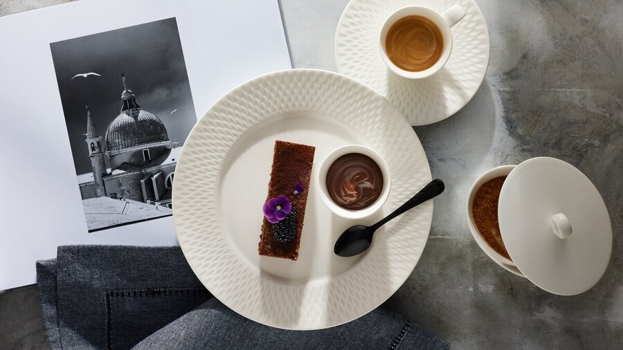 Sternekoch Dirk Maus teilt seine Ansicht zu Food-Styling mit uns: “Weniger ist oft mehr. Die Qualität der Speisen soll für sich wirken, daher beschränke ich mich beim Garnieren auf das Wesentliche. Diesen puristischen Ansatz unterstreiche ich mit dem passenden Porzellan. Eine eigenwillige Linienführung und textil anmutende Oberflächen laden dazu ein, auch auf dem Teller vermeintlich Gewohntes neu zu entdecken.”