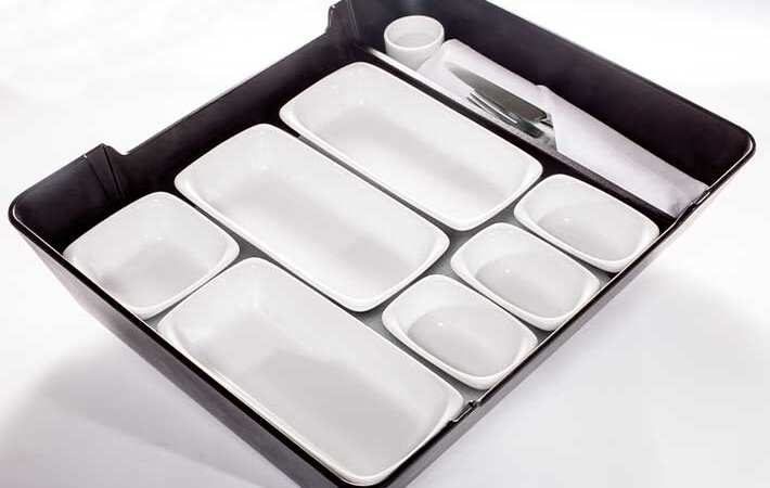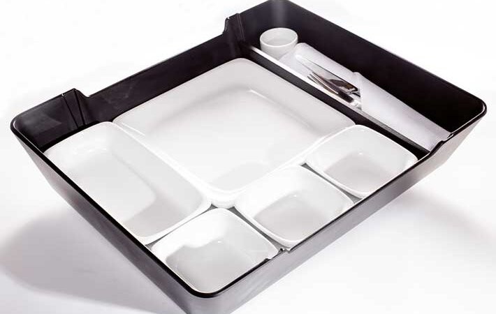 Vor allem in der Aussengastronomie macht das Servieren mit der BentoBox Sinn. Die Speisen sind hygieniesch abgedeckt und auch bei längeren Wegen von der Küche bis zum Strandkorb bleiben die Speisen optisch andprechend.