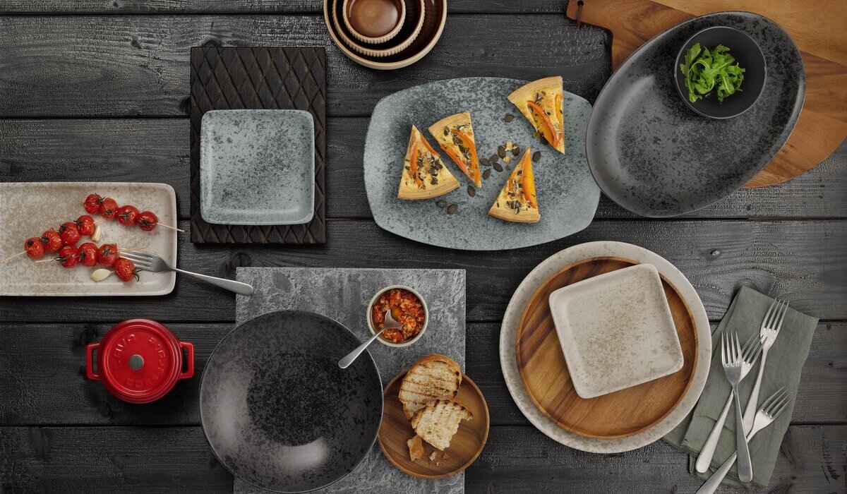 Cremige Kürbissuppe ist eine beliebte Vorspeise in der Herbstzeit. Die klassische Kürbissuppe besteht aus in Brühe püriertem Kürbis, Kartoffeln, Schalotten, Knoblauch und Karotten. Für die nötige Würze sorgen etwas Chili, Salz und Pfeffer. Anschließend wird etwas Crème fraîche zugegeben, für die vegane Kürbisgericht-Variante kann auch Kokosmilch verwendet werden. Zum Schluss wird die Suppe in einen tiefen Teller gegeben und mit Salbeiblättern, knusprigen Brotwürfeln und grob gehackten Walnüssen garniert. Die Farbe der Kürbissuppe kommt am besten in schlichten, tiefen Tellern zur Geltung, wie beispielsweise den aus der Bauscher Scope Kollektion.