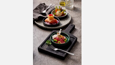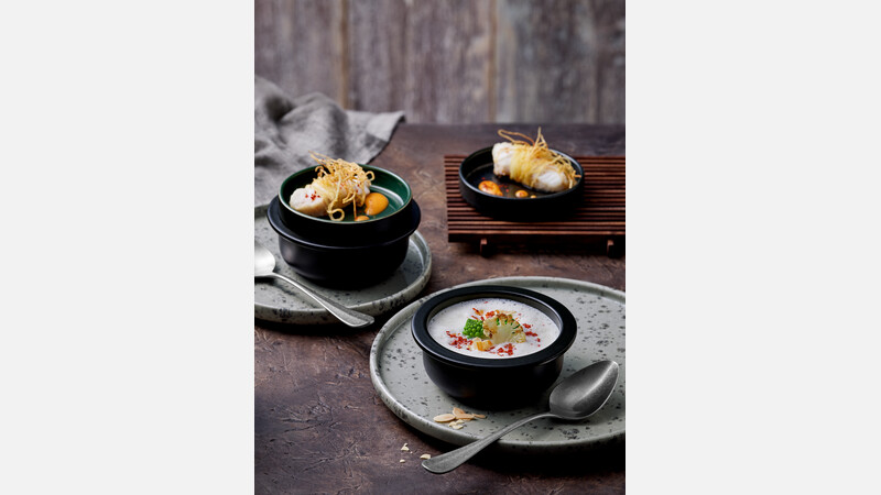 Für kreative Überraschungsmomente: Die Deckel der puristischen Cocotte sind wie kleine Teller gestaltet und funktionieren auch ohne das Unterteil. Es gibt sie in verschiedenen Farbausführungen. In Verbindung mit der Cocotte in puristischen Design, aus Steinzeug mit seidenmatt schwarzer Glasur verleihen sie alten Rezepturen ein modernes Outfit.-
