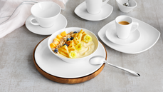 Purist without being monotonous; modern without being obtrusive. That's OPTIONS - with various coup plates, hollowware, bowls and table accessories one of Bauscher's most extensive collections. Simple but varied shapes - round, triangular or square - allow for a variety of combinations. The generous proportions always draw the focus to the essentials.