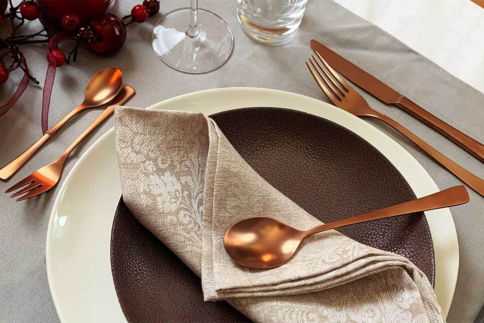 According to the motto "back to nature", colors, decorative elements and materials in natural tones are also popular during this season. This decorative trend combines a natural look with sustainability. Especially for venues that want to convey a modern environmental awareness to their guests in addition to healthy and regional food, nature-oriented Christmas decorations in bright colors and soothing green can be the right choice. Classic tableware in subtle cream tones like the collection RAFFINESSE by Bauscher or in beige like NATURE INFUSION by Schönwald can be wonderfully combined with decorative fir branches or table linens with plant motifs.