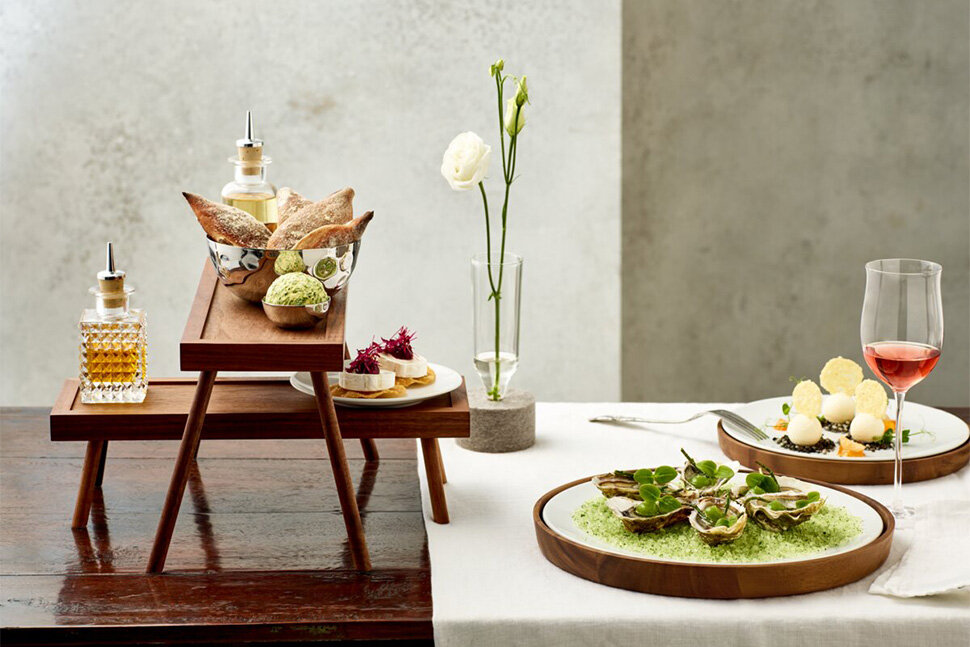 Setting a festive table begins with the choice of table shape. On a rectangular table, special guests can be placed on the short sides to give them prominence. In contrast, a round table shape promotes conversation and exchange between guests. Make sure that all sides of the table are easily accessible. This makes it easier for staff to both set and serve at an occupied table. Also, when choosing the width of the table, make sure that there is enough space for guests. An ideal width is between 60 and 80 cm, measured from the center of one plate to the center of the opposite plate.