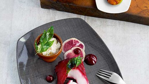A country inn likes to serve its newly interpreted, regional cuisine on one of our modern rustic dishes - perhaps even made of stoneware/stoneware or ceramic. The dishwasher-safe, stackable porcelain with decor is based on natural structures and is a real all-rounder thanks to the natural colors and fits into a wide variety of gastronomic locations. Thanks to the simple variety of plates, cups, bowls and jugs, all items can be combined and put together to create an individual tableware set for event and system catering. Whether with or without relief, whether round, square or oval plates and bowls, whether black, white or in color, whether in coup or flag shape - the choice is limitless!