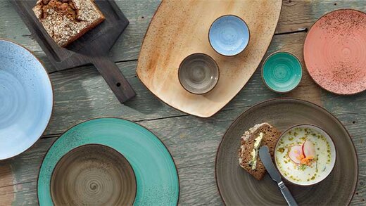 A small urban bar needs a versatile set of chic, easily stackable porcelain: practical tableware for the daily requirements of the catering trade is the be-all and end-all. Not only can plates, bowls and dishes be interchanged in our collections, but what is much more interesting is that this is also possible for cups and saucers in some collections. This means that different cups fit on one type of saucer. Have you ever tried baking directly in our cups? Not only visually eye-catching, but also practical, as you don't need separate baking tins.