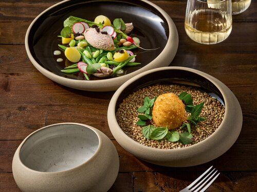 The avant-garde EMBRACE tableware collection is aimed at pioneers who want to present their culinary experiments and creations with a touch of innovation and style. EMBRACE items impress with their nest-shaped form, made from the revolutionary Eco-Gres® material, which consists of 90% recycled ceramic.