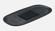 Barbecuing in a nutshell: the stoneware platter COAST & COUNTRY with a cast-iron look captivates with “integrated” draining grills. A brilliant idea! This way, grilled and fried food stays crispy for longer and the breadcrumb coating remains on the schnitzel. Yet, there is still plenty of surface area to cut as usual. Design: Carsten Gollnick.-