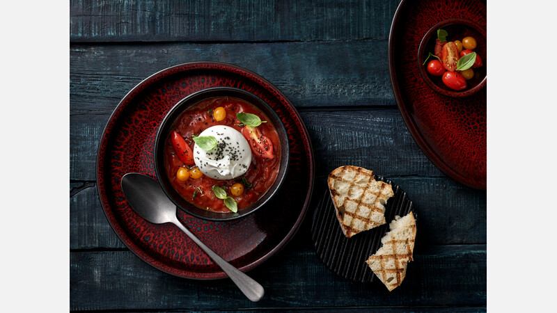 For some - typically Asian or vintage 70s; for others - an absolute must-have for modern presentations. Each item is unique. The powerful Glow collection has an appealing intensive red effect glazing interspaced with anthracite-coloured highlights, as well as soft design lines and a thick rim. You couldn't make more of a statement. Material: red stoneware.-