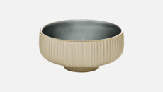 NARA is a comprehensive stoneware collection designed for ambitious restaurants. Thanks to the craftsmanship in production, there is a captivating contrast between smooth inside surfaces and bold textures on the outside. The delicate feet are barely visible, making these items appear to float. The patina-like crackle glazes are available in various earth tones and matt black, while the outer walls are either smooth or with a relief design. This allows endless possible combinations for appealing food presentations. Design: Carsten Gollnick.-