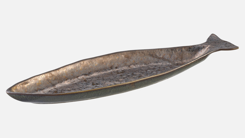 This 43 cm fish-shaped platter from the PLAYGROUND SHELLS collection offers a broad, elongated surface well suited for whole fish, seafood compositions or shared coastal dishes. Its silhouette provides a clear narrative element while remaining practical for precise plating. The Shells glaze features a subtly weathered look that recalls maritime textures shaped by salt and time, giving the piece a distinctive, natural character. Made from durable stoneware, the platter handles daily professional use reliably, including dishwasher cycles and temperature changes. Its sculptural presence makes it a functional choice for chefs who work with seafood and expressive presentation formats.-