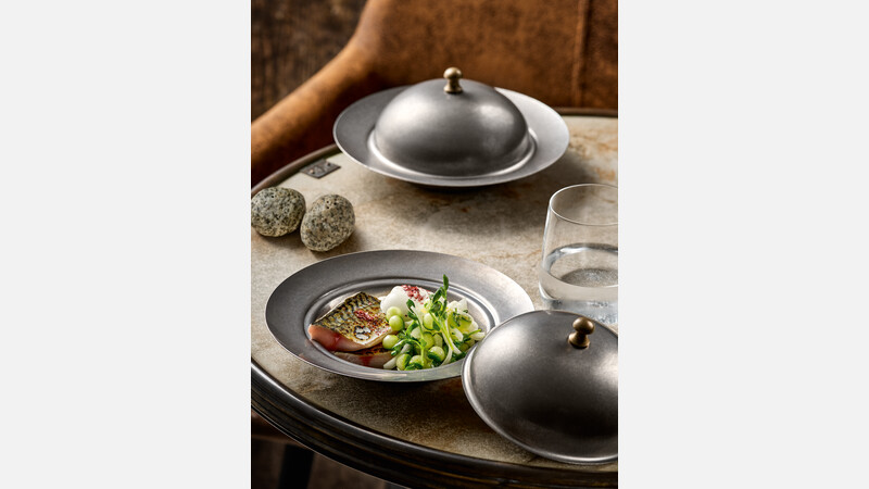 SPOTLIGHTS - Plate round w. cloche - Plate with cloche gold 20cm