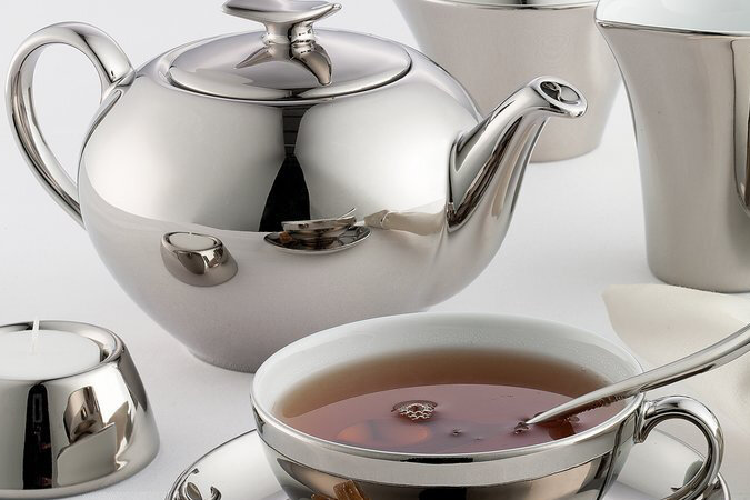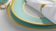 Underglaze and inglaze decorations are dishwasher safe and have a long shelf life, which is at least 3,000 dishwasher cycles. The color palette for underglaze decorations is very limited, with cobalt blue being one of the most popular underglaze colors. In comparison, inglaze colors offer a wide range of colors. Inglaze metallic colors are particularly interesting. The metallic effect is achieved without the use of precious metal. Therefore, metallic colors are microwaveable. In case of frequent use of porcelain with onglaze decoration, it should be noted that the decoration is not so durable and therefore only dishwasher safe.